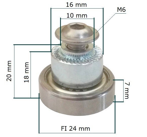 Rol (lager) voor schuifdaken van aanhangwagens (FI 24 / 7 mm)