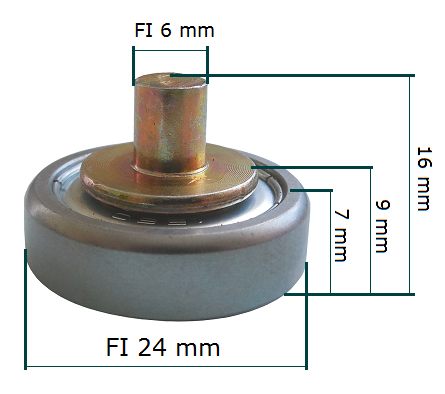 Rol (lager) voor schuifdaken van aanhangwagens (FI 24 / 7 mm)