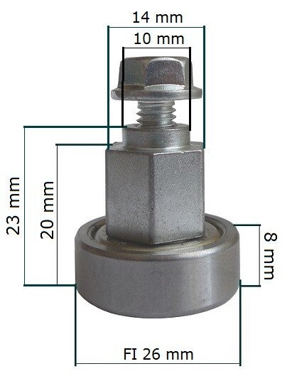 Rol (lager) voor wagens van schuifdaken van opleggers (FI 26 / 8 mm)