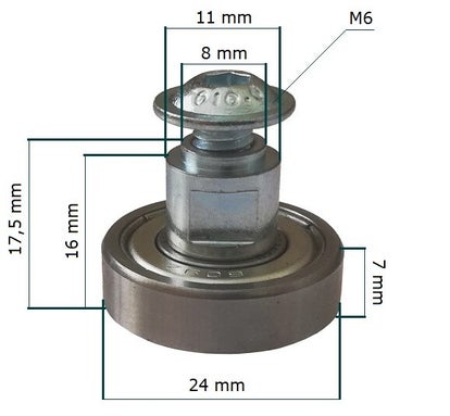 Rol (lager) voor schuifdaken van aanhangwagens (FI 24 / 7 mm)