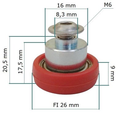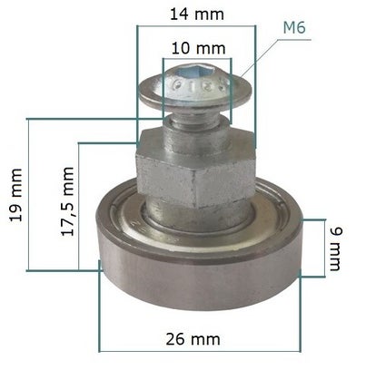 Rol (lager) voor wagens van schuifdaken van opleggers (FI 26 / 8 mm)